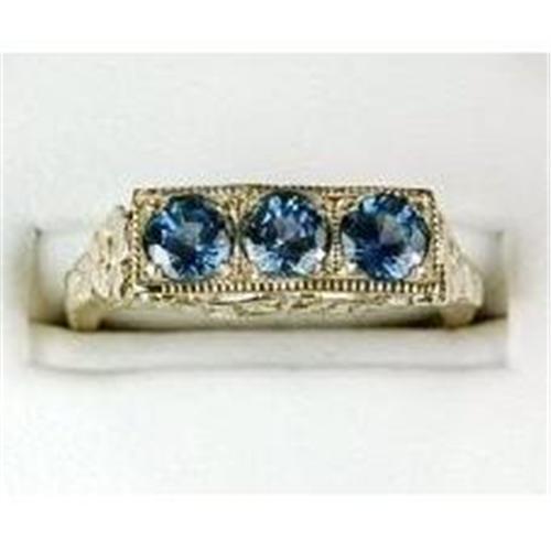 Antique 14k White Gold filigree ring, can be worn as an Antique Wedding Band, with 3 Genuine Blue Sapphires set across the top surrounded by very lovely filigree work. The Total Weight of the Sapphires = One Carat! (The Sapphire is the Birthstone for September!)This ring is a size 7 and I can easily resize it for you. It is in Mint condition!