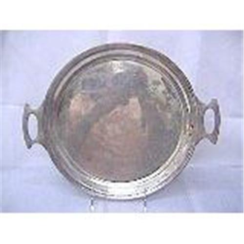 This is A very nice Antique Sterling Silver Round Tray in nice Art Nouveau styleand good condition( just in the center look like it has been hammered and some normal scatches). It needs good polishing.. 14OZ W:14"- D:11"