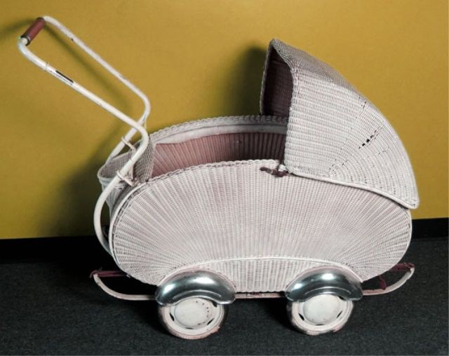 color with most original paint remaining, hood and adjustment attachment function. Chromed fenders cover #28 wheels, leather springs straps remain in tack with a plaque bearing maker initials "FM" attached; very good overall condition with minor