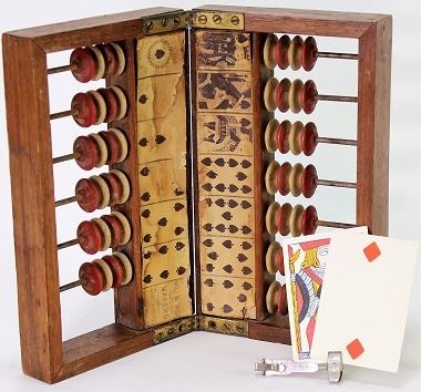keeper with so-called wizard card hideout. Found by an early collector in Tombstone, marked on inside layout, 11 1/2" X 10 1/2" unfolded. Terrific old west gambling collectable by a great maker. Est. 500-800