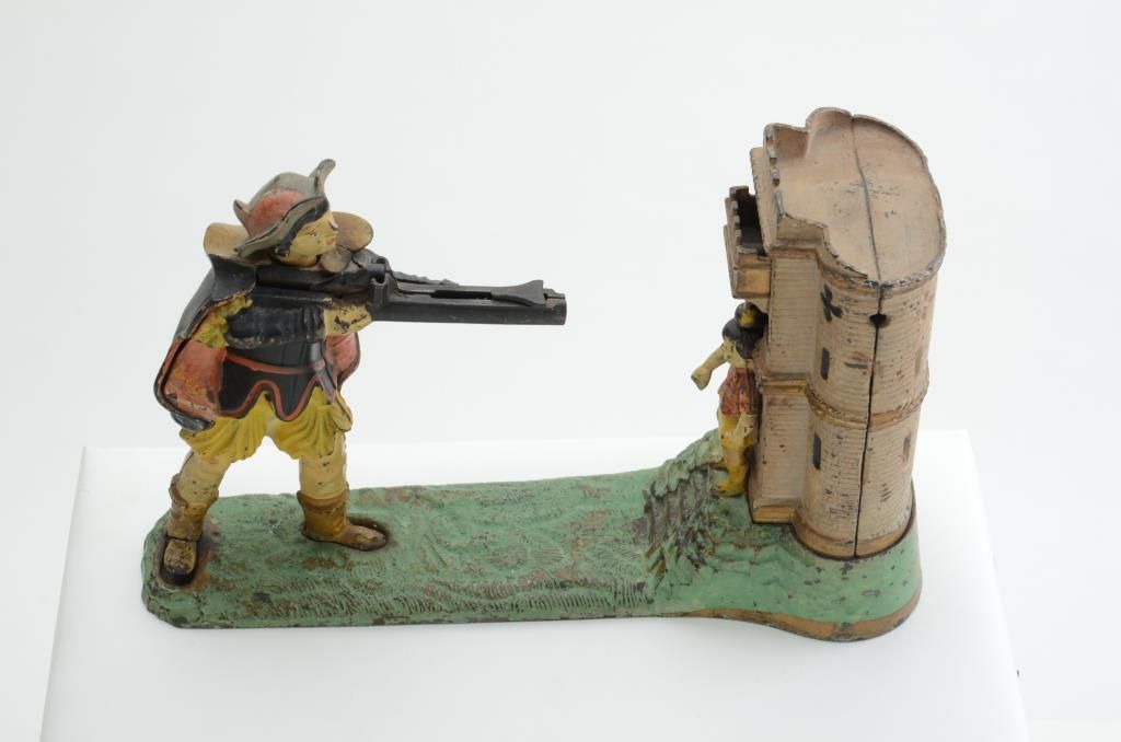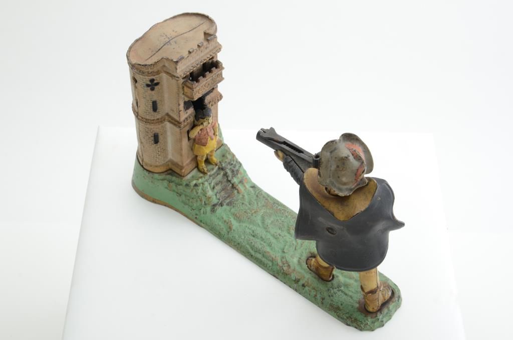 Antique William Tell mechanical cast iron bank by J & E Stevens in working condition at time of description with the majority of its original paint and great patina; a classic of the period toy banks. Est.: $800-$1,600.