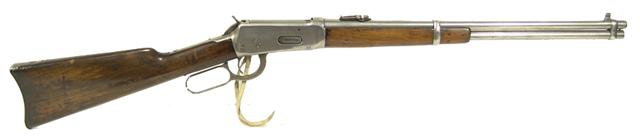 Circa 1894, Beautiful model 1894 "Stellashooter" (?) carbine with 20" round barrel, ".30 W.C.F." caliber with saddle ring, with rare early serial #5057; very good condition.
