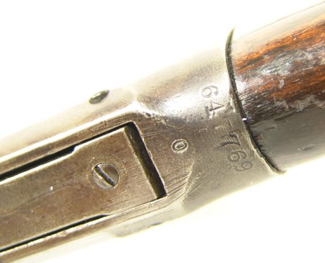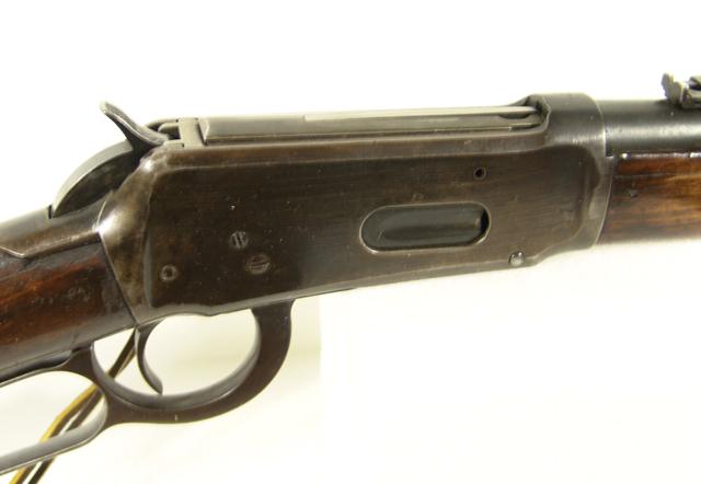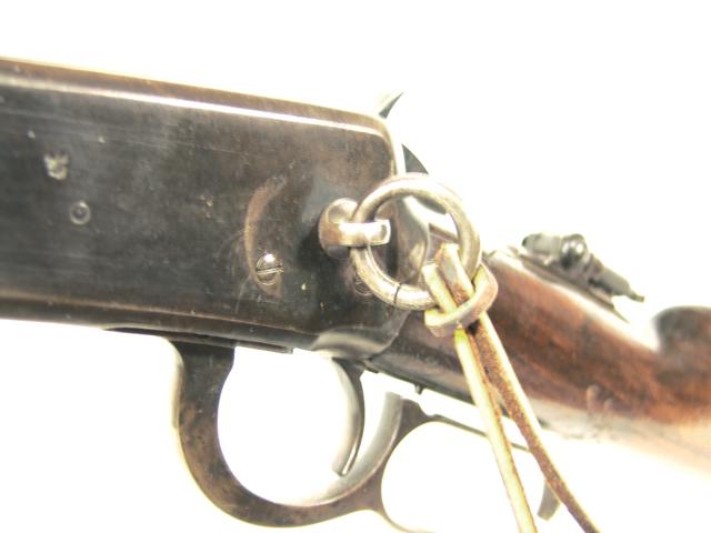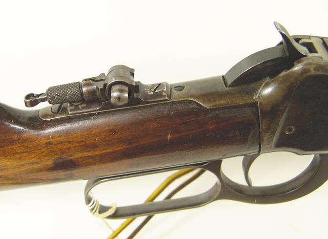 Early 1900s, Rare 1894 .38-.55 cal. lever action carbine with 20" round barrel, saddle ring, and Lyman tang sight - ser. #647769; good condition.