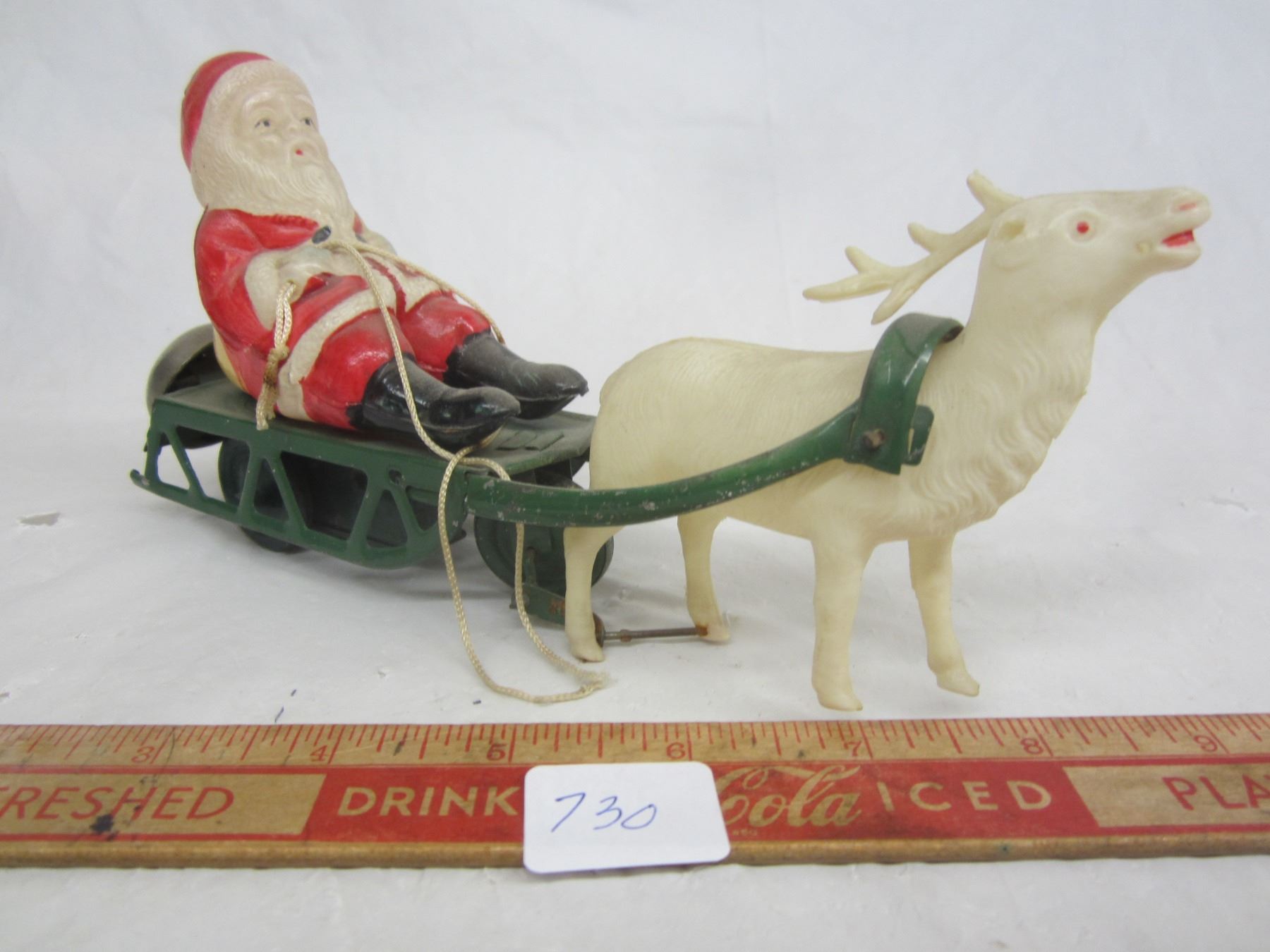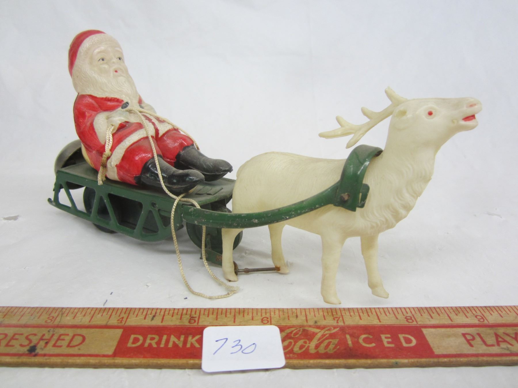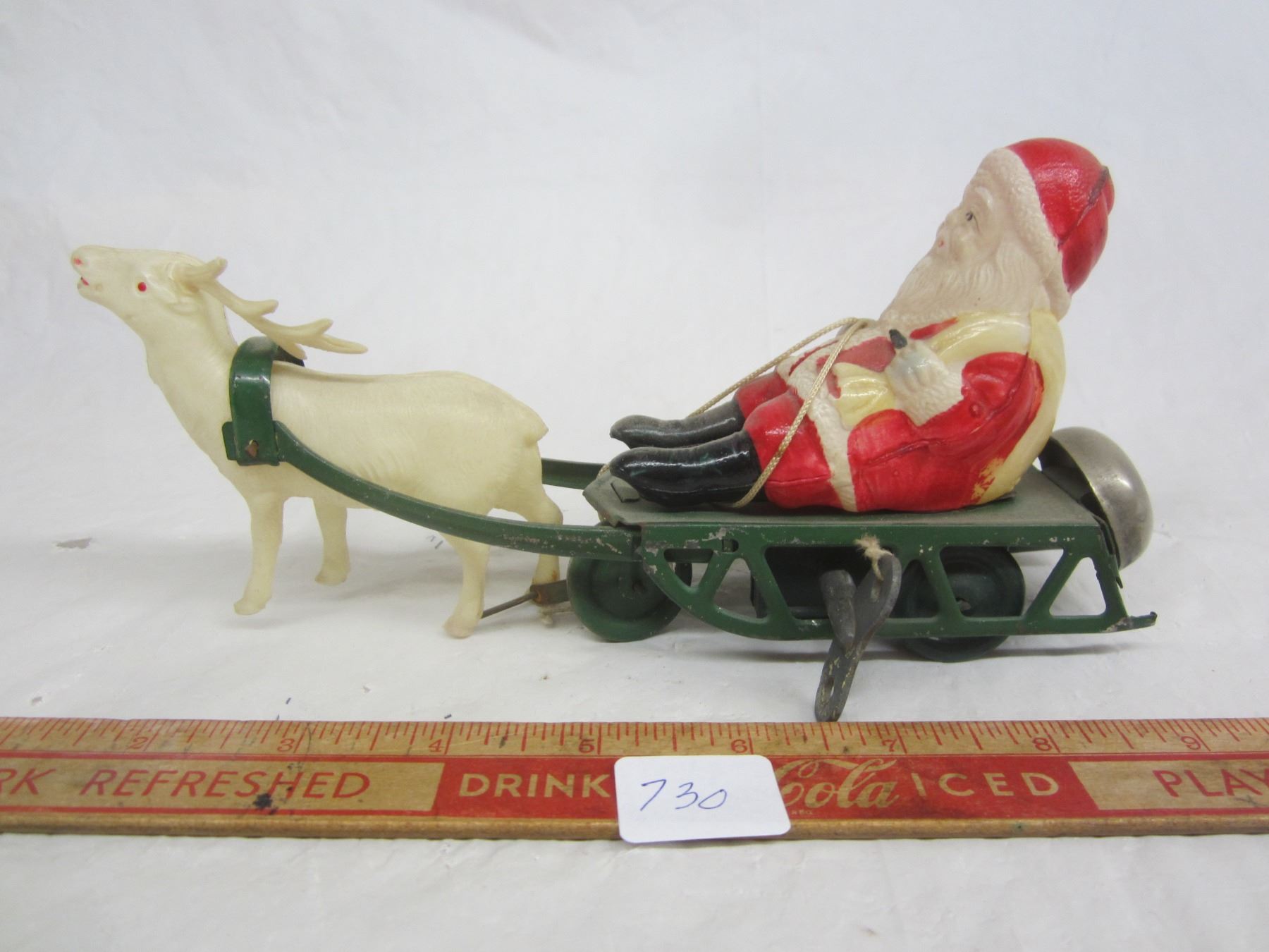 Antique Wind Up Santa And Sleigh Working with Key Missing 1 Antler