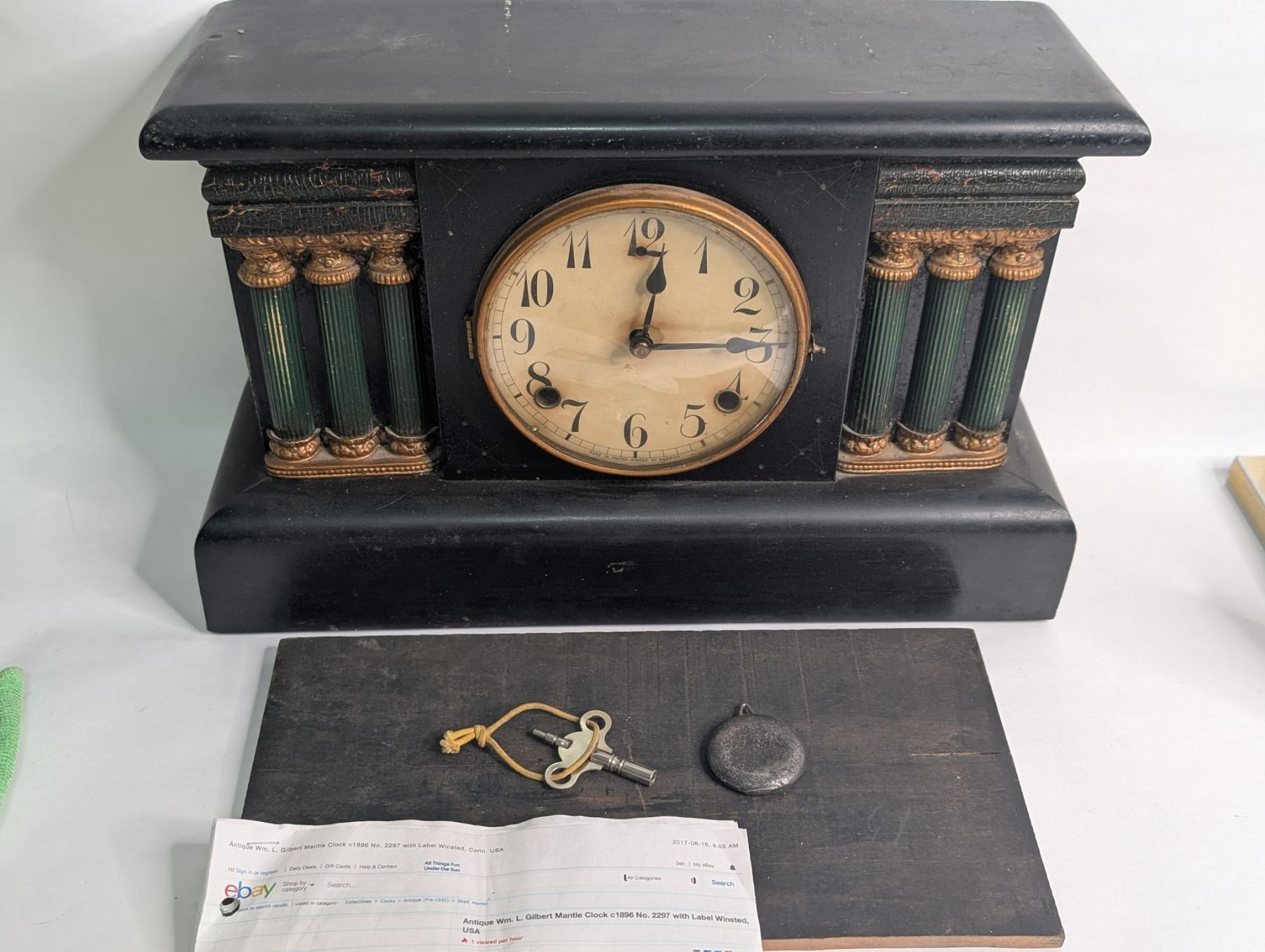 Antique Wm. L Gilbert Mantle Clock with Key etc. c1896