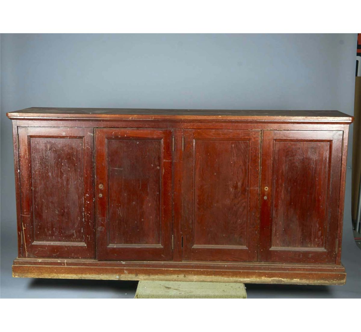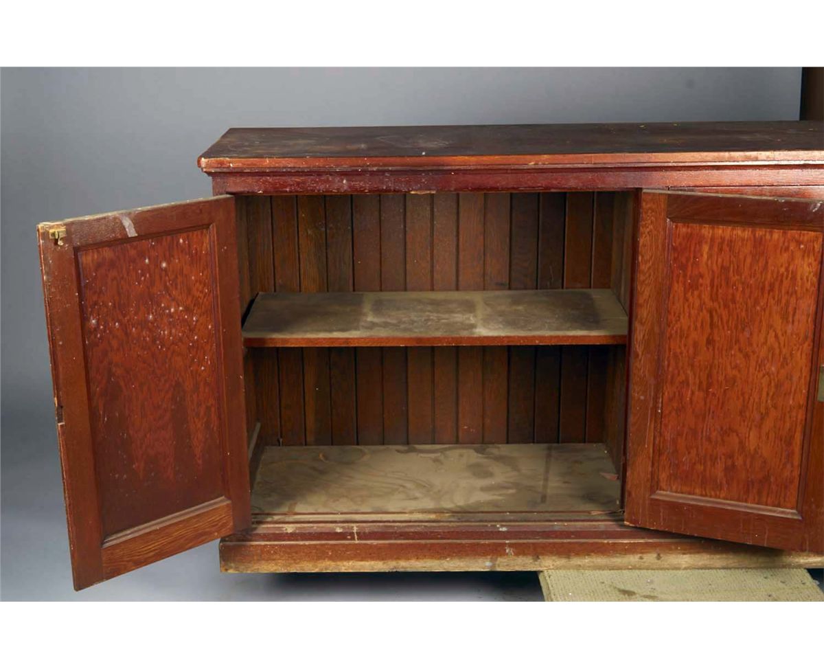 2 double door front opening compartments house one long shelf each, could use refinishing but structurally sound.