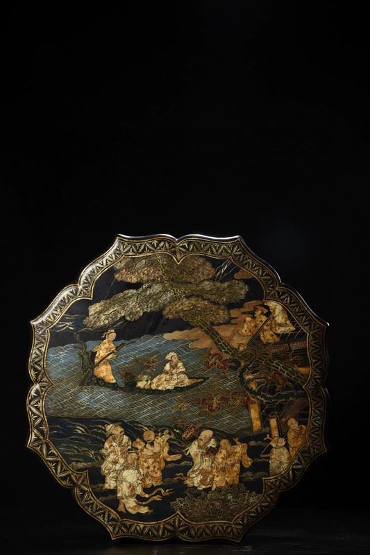This antique wood-base gold-painted cloisonné box features the exquisite craftsmanship of traditional lacquerware, with a smooth and glossy finish. The top is decorated with the iconic "Eight Immortals Crossing the Sea" scene, each immortal is depicted with distinct expressions, blending seamlessly with the surrounding waves and clouds. The gold painting technique gives the piece a luminous quality, enhancing its visual allure. Combining cultural symbolism with practical use, this box is a precious collectible, reflecting high artistic and historical value.