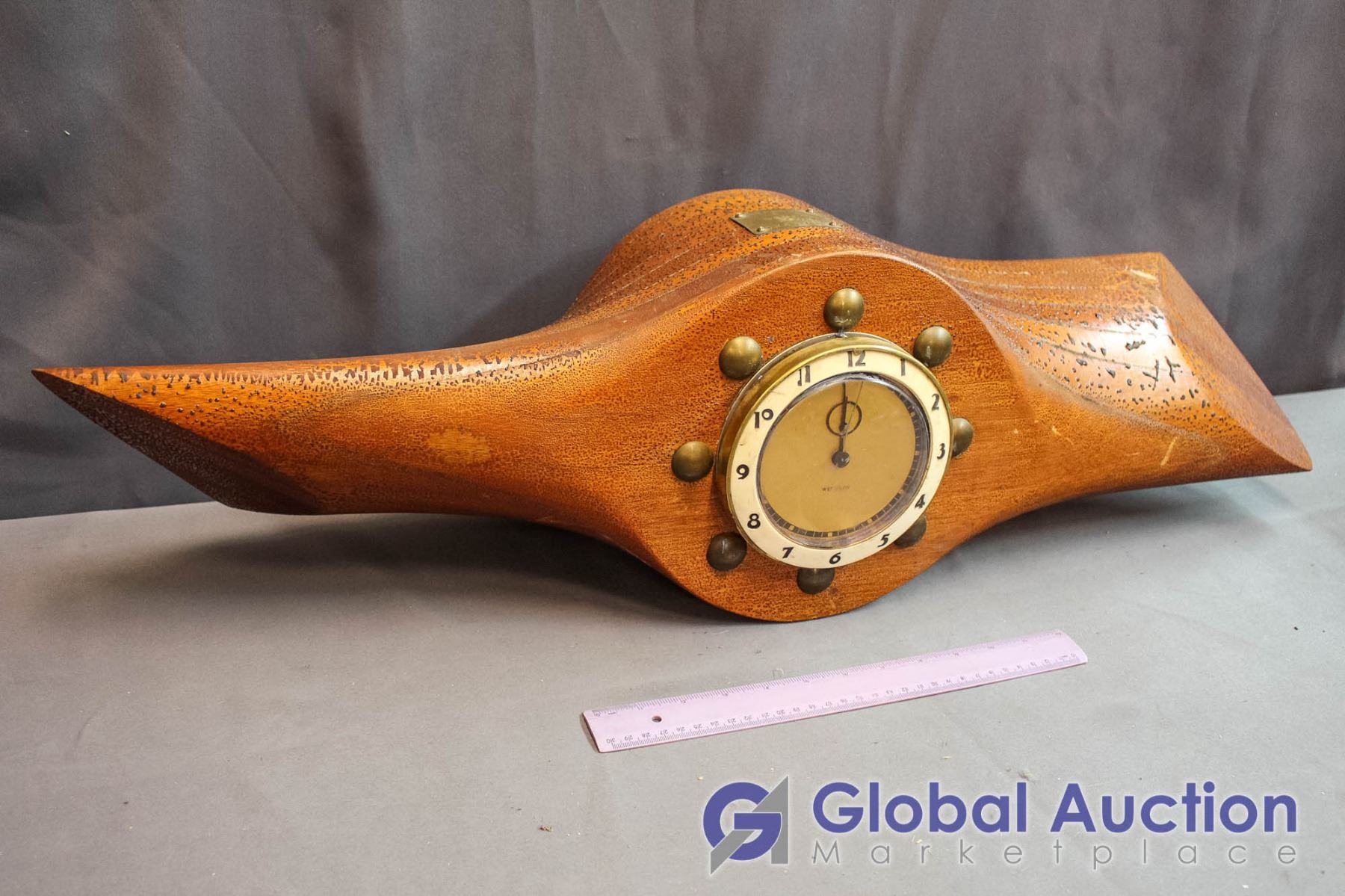 Antique Wooden Electric Mantle Clock - Made From Center of Wooden Plane Prop, Westclox