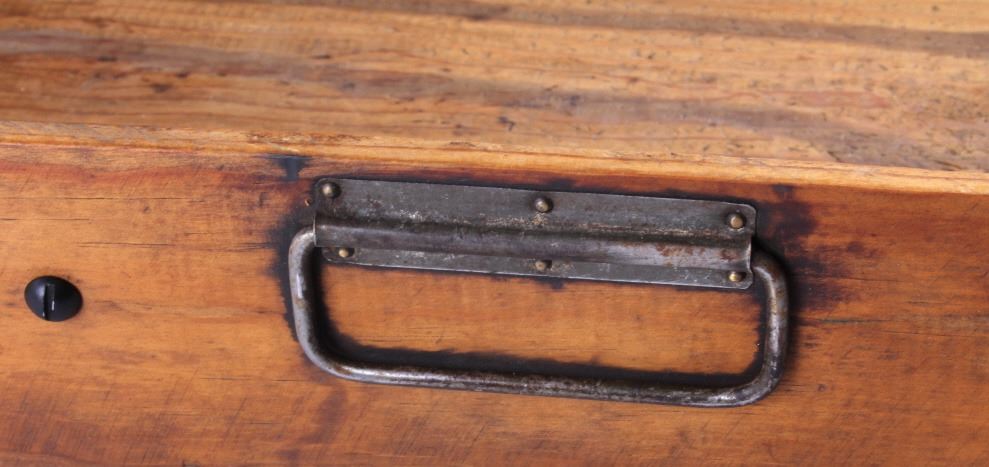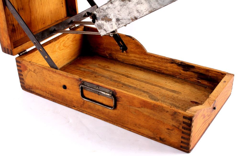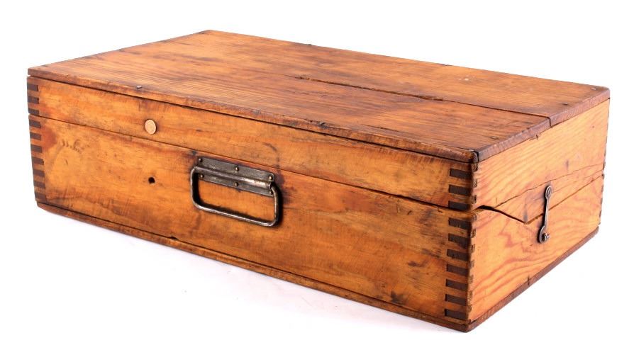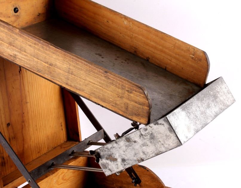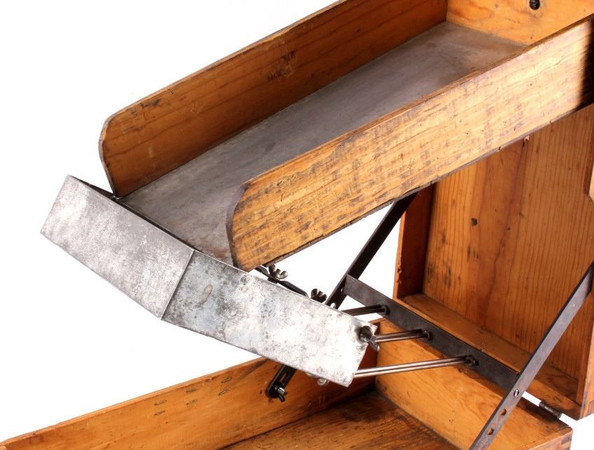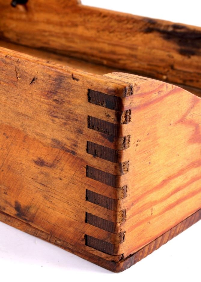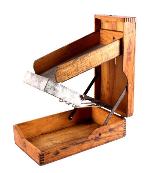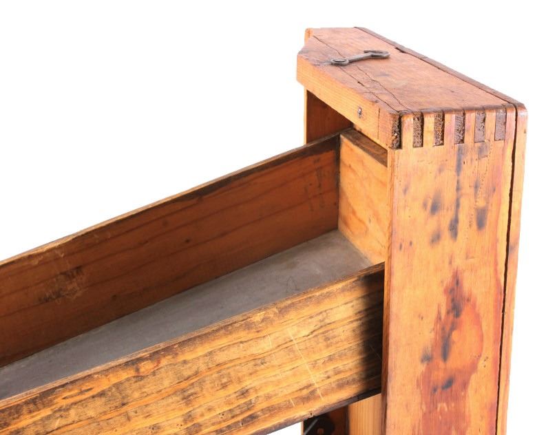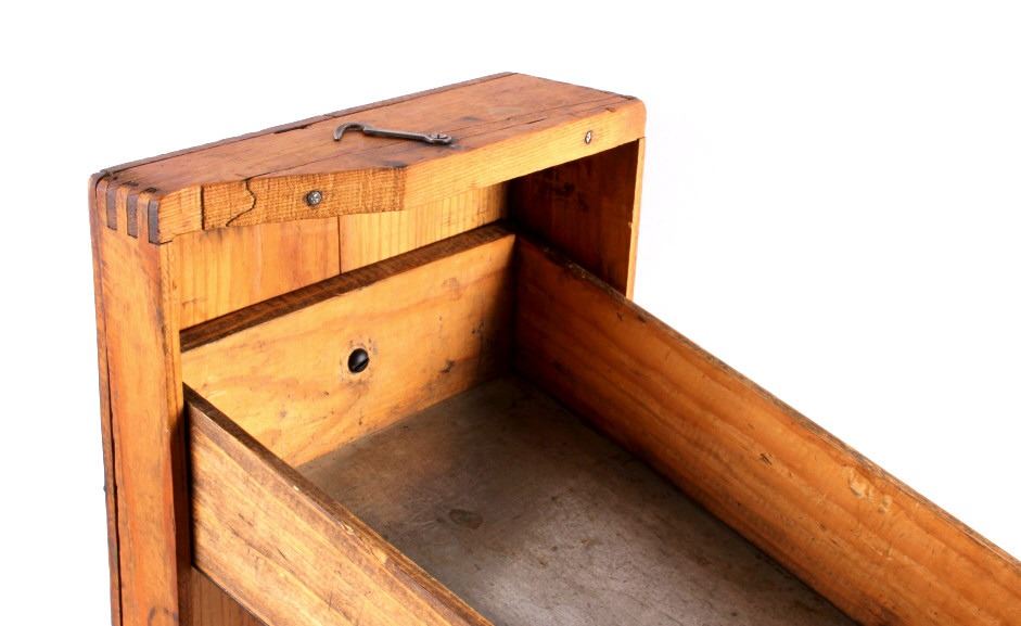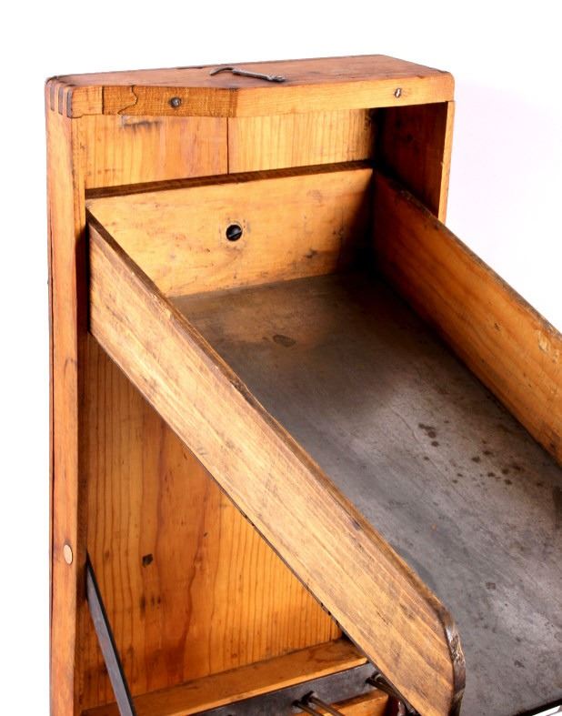This is an antique general store nail sorter. The box is made from solid oak and features dovetailed construction. The piece has a sorting tray where the nails are dropped into. From there, they fall onto the slide where they are aligned and sorted. This is a great early piece that shows good overall condition. When closed, it measures 6" x 10.5" x 19".