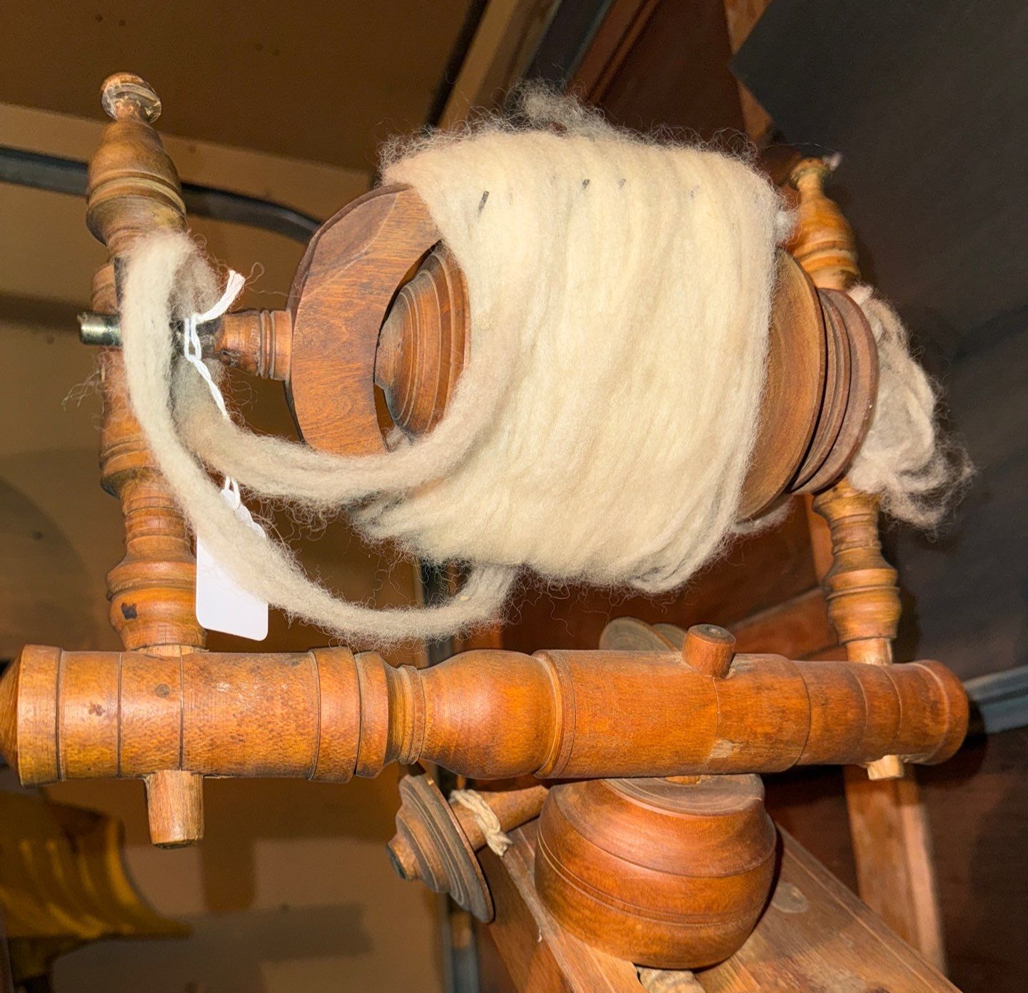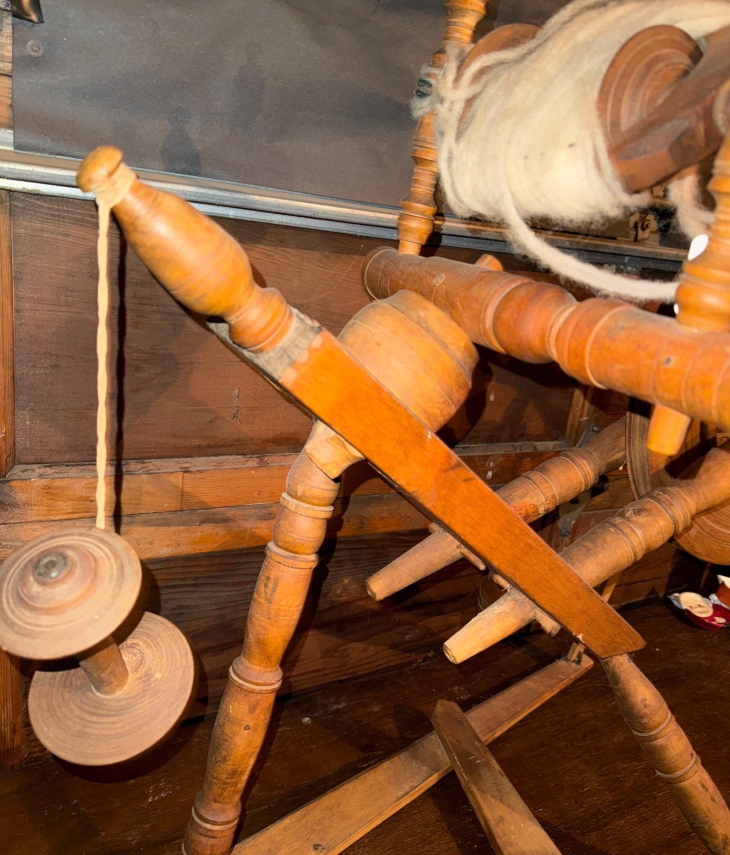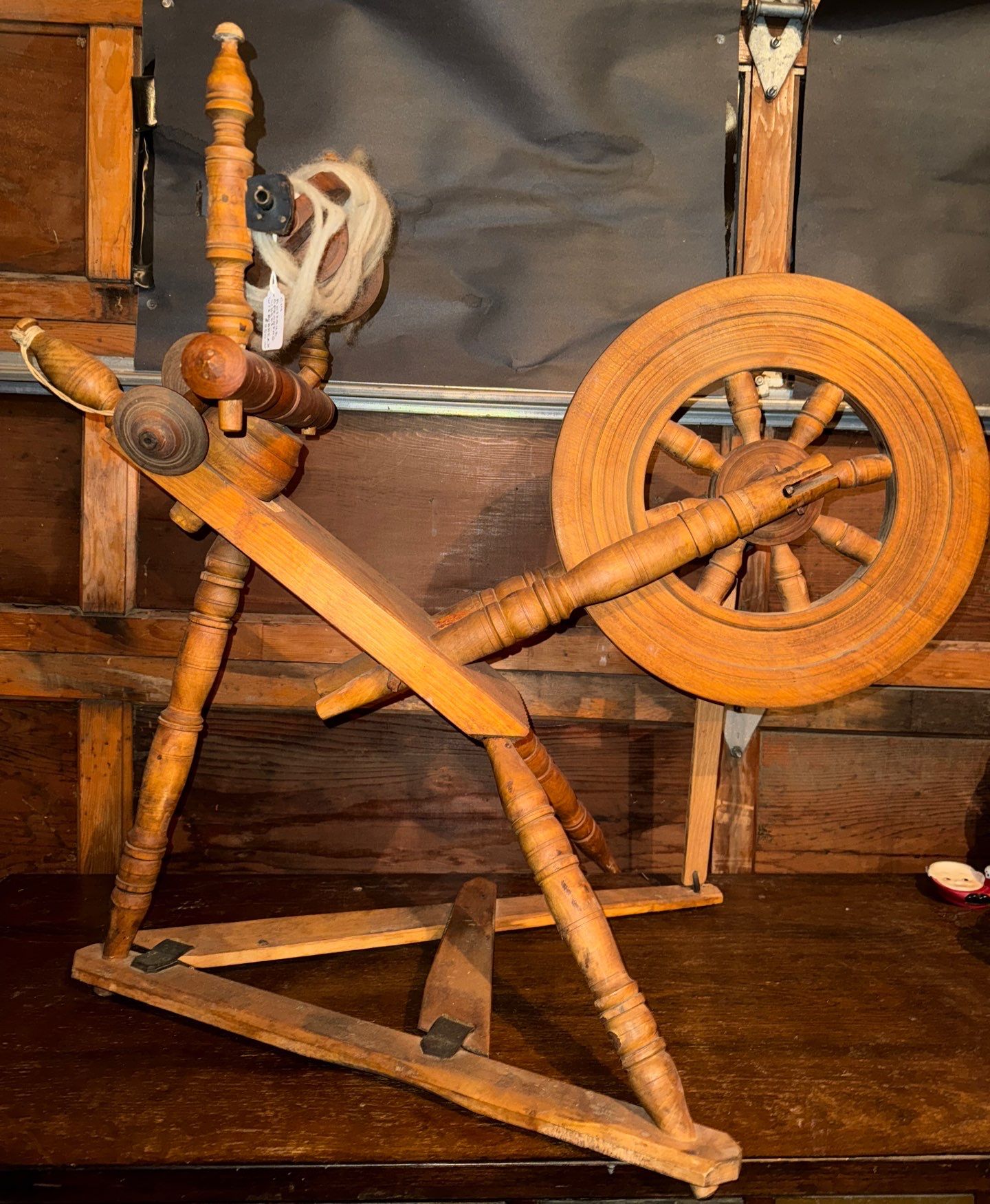 Antique Wool Primitive 19th Century Wood Spinning Wheel