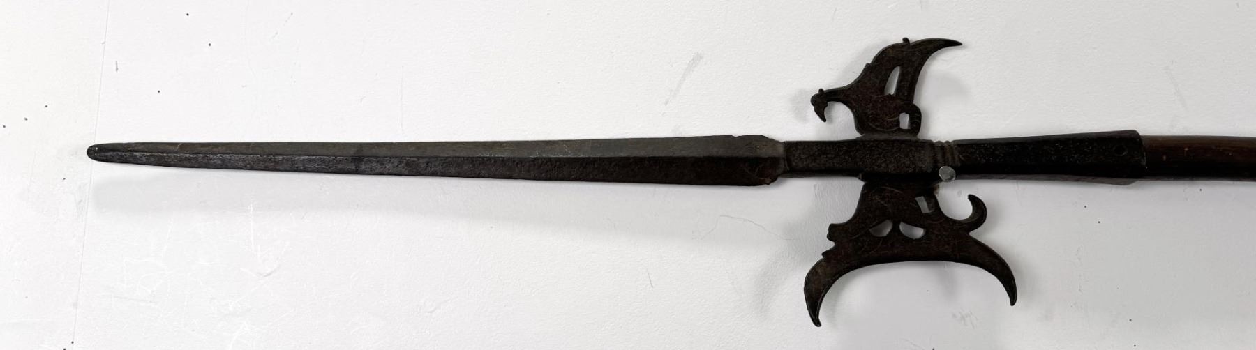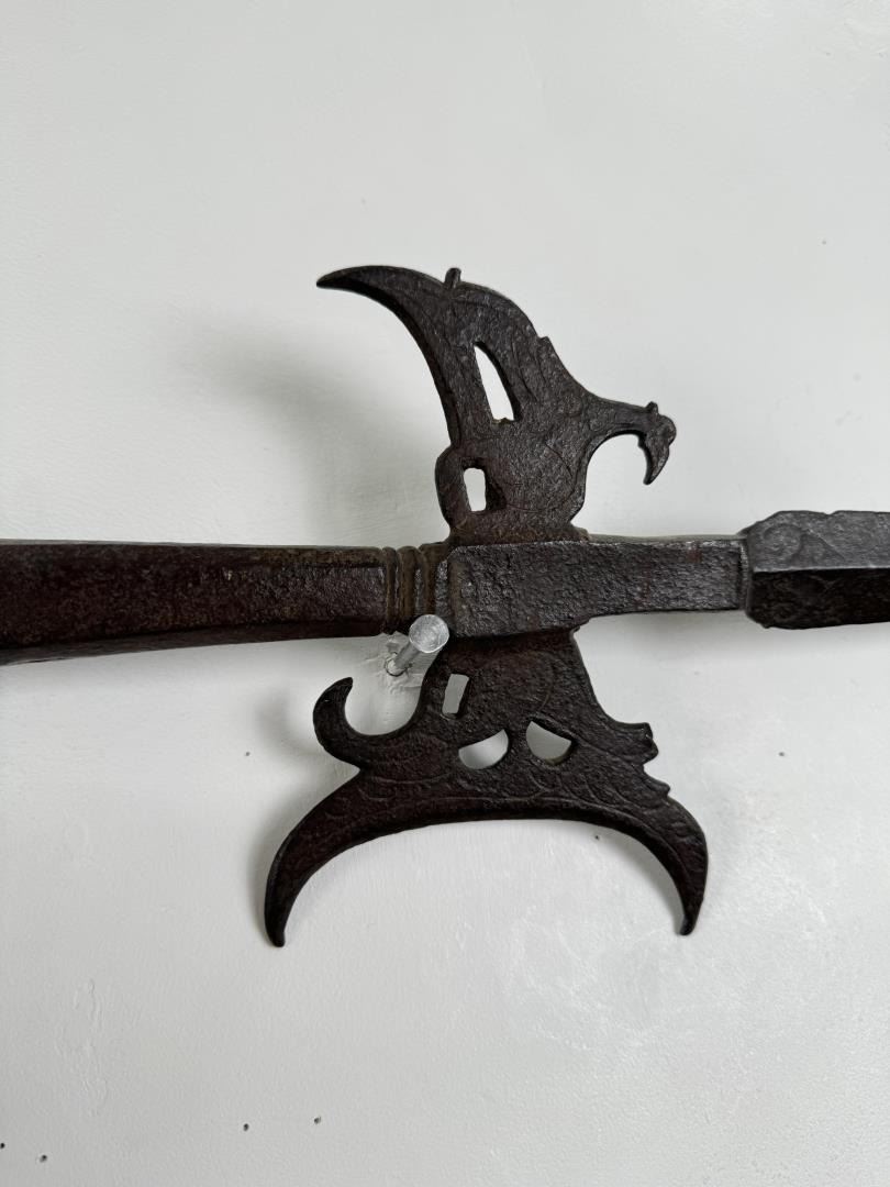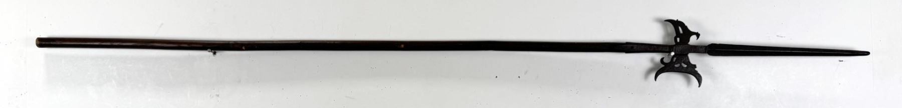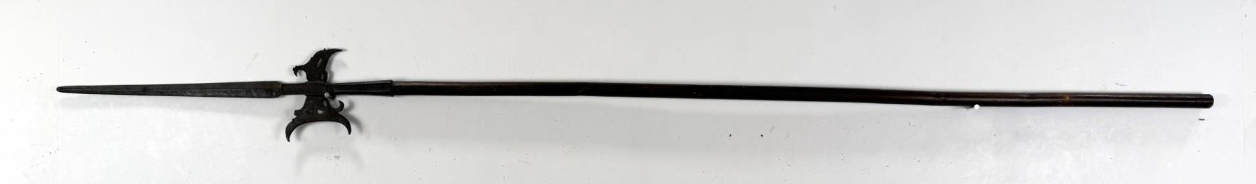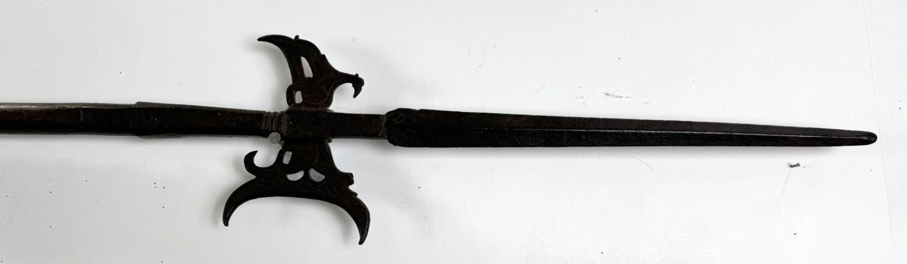 Appears to have quite a bit of age. 86.25 inches long tip of blade to end of staff. Blade is 16.5 inches long.