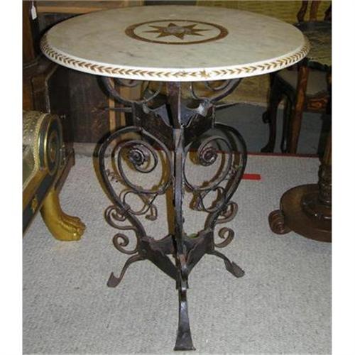 <tr><td>Title:Antique Wrought Iron Table with Marble Top</td></tr>