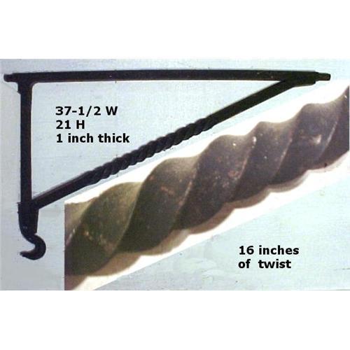 Antique wrought iron crane for the fireplace, American 18th C. This wrought iron fireplace crane is an outstanding example with seldom-seen long twisted buttress and great patina. Crane is made of fully one-inch-thick bars with very large hook to hold big heavy kettles. Handmade wrought iron cranes for the cooking hearth were an essential accessory in antique American homes. 37.5W x 21H with 16 inches of twist, all handwrought and still perfect. It is a companion piece to our smaller crane #325806 -- both having come from the same 18th C. New England house. Check out our other antique fireplace accessories. Also we have available other items for Old House Restoration: 18th century nails, wrought iron hinges and gudgeons large and small, wrought iron hooks including a swivel, exterior house facade of Federal swag design, etc. -- please inquire.
