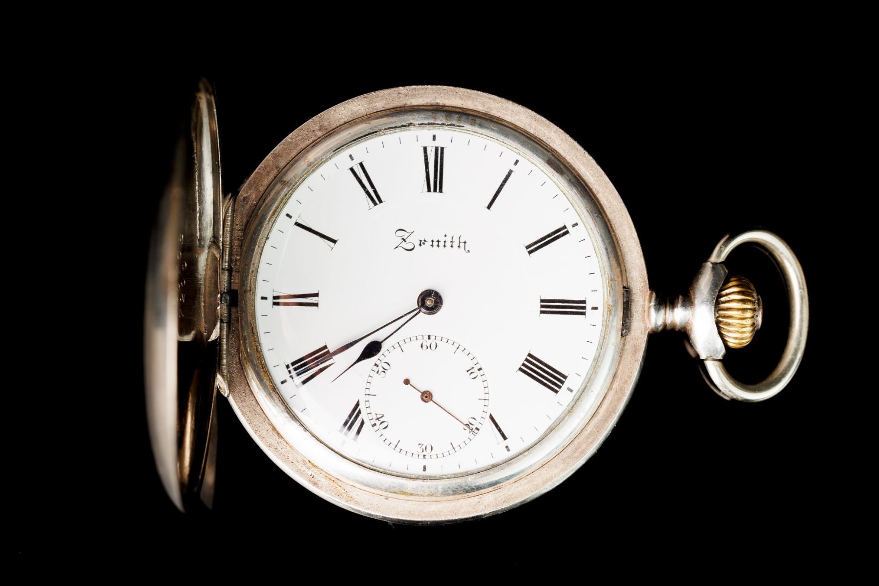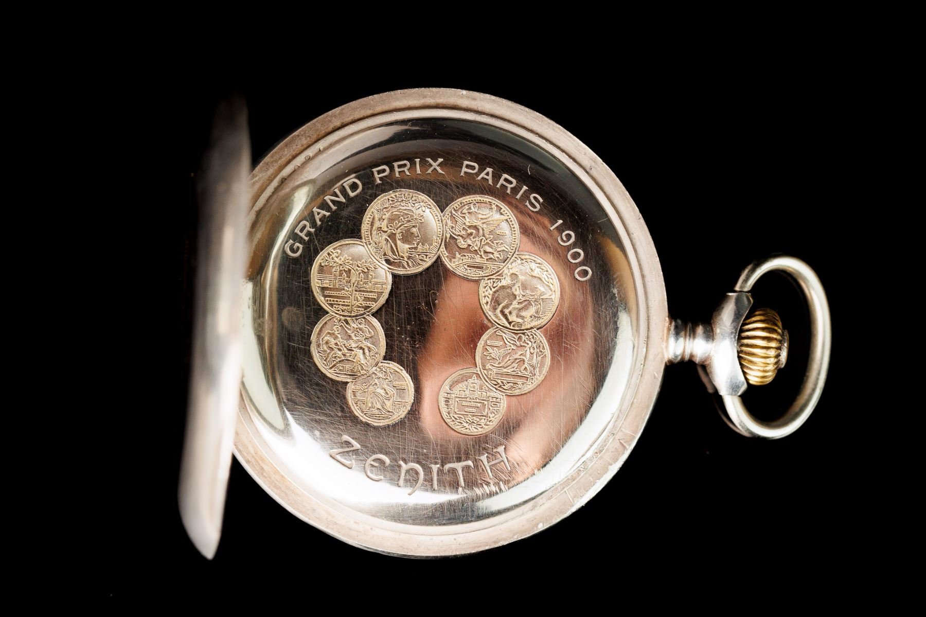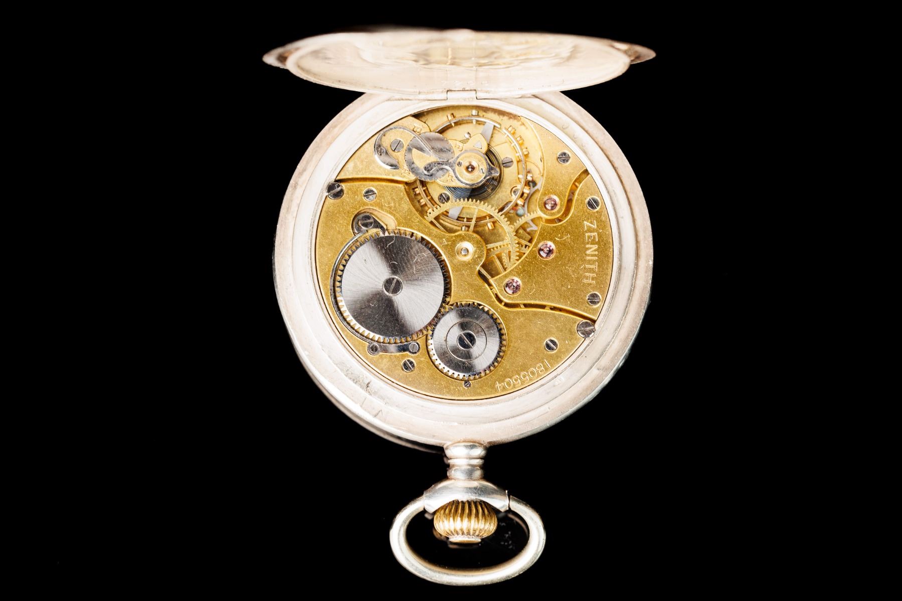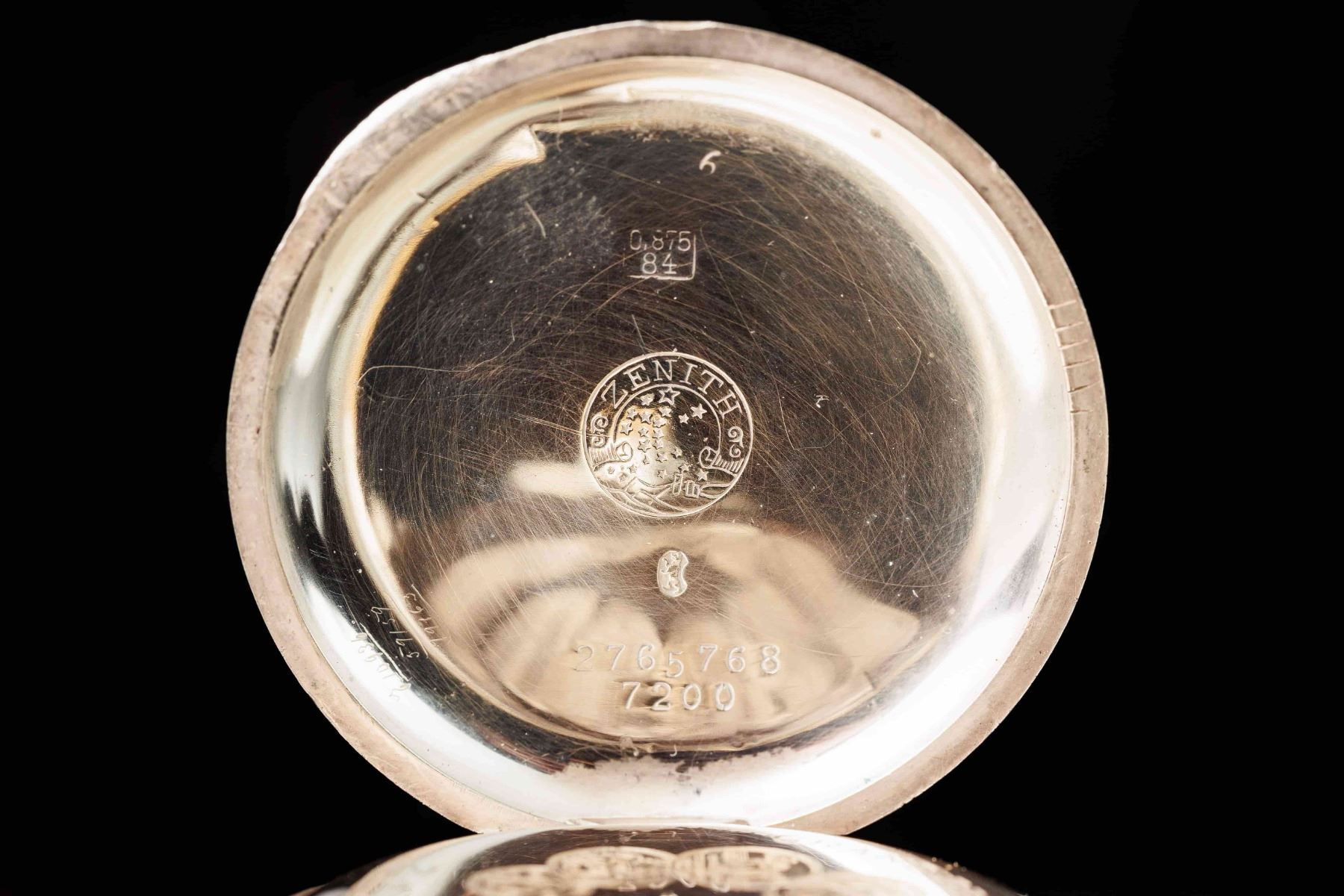 Zenith pocket watch in silver case. Silver 0.875 - 84. Movement with ruby stones. Grand Prix medals at the 1900 Paris Exposition. Factory number 2765768 7200. The turn of the 19th and 20th century. 4,7 cm. The watch is fully functional after service.