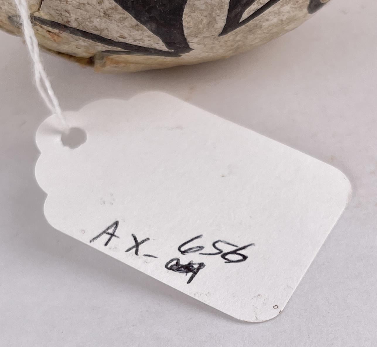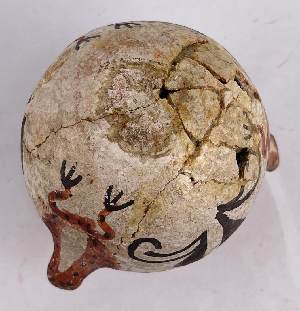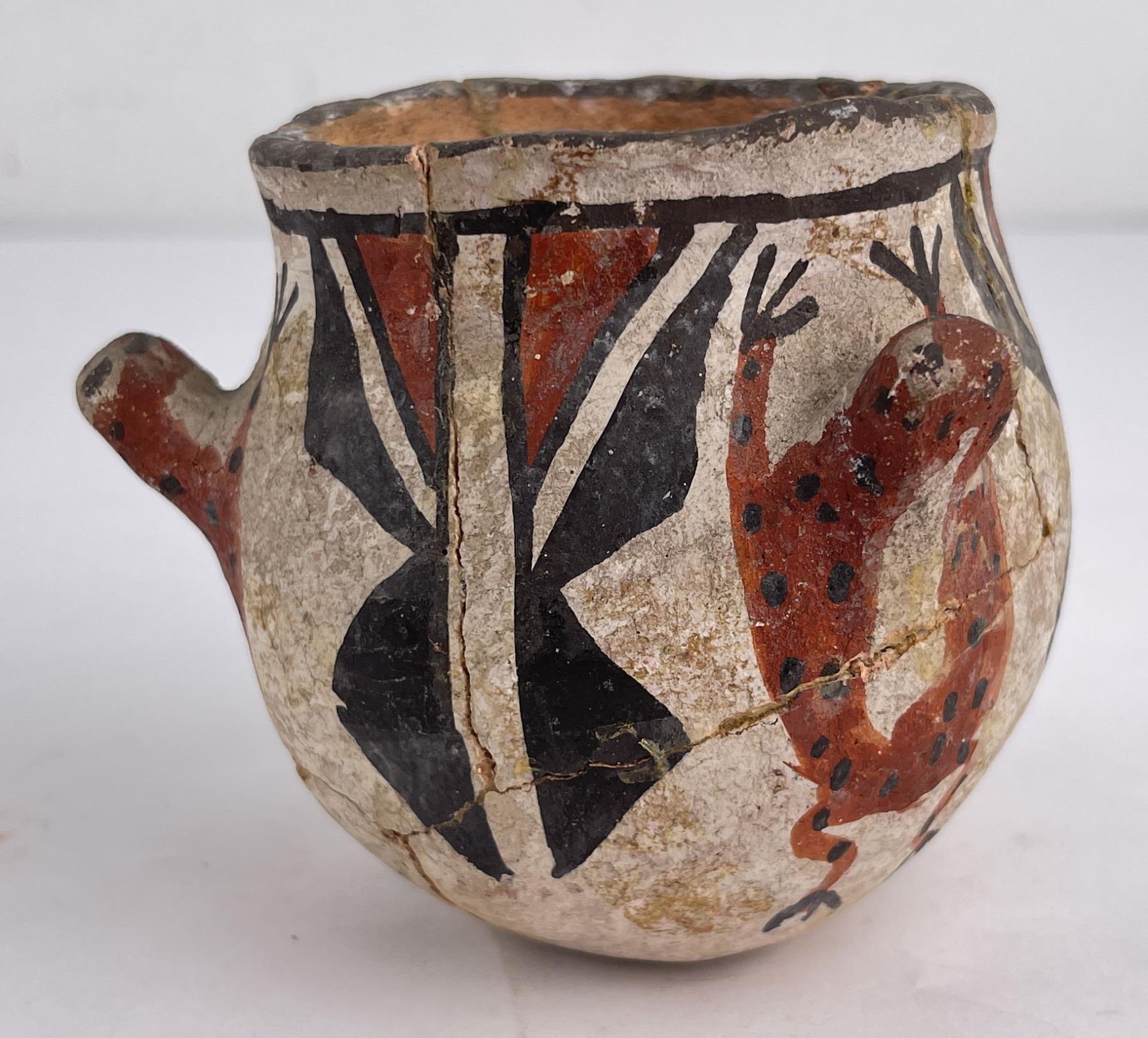 Very nice pot with lizard fetish handles. Has been repaired. Very early. 3 5/8" tall. Allard Auction Collection Inv: AX