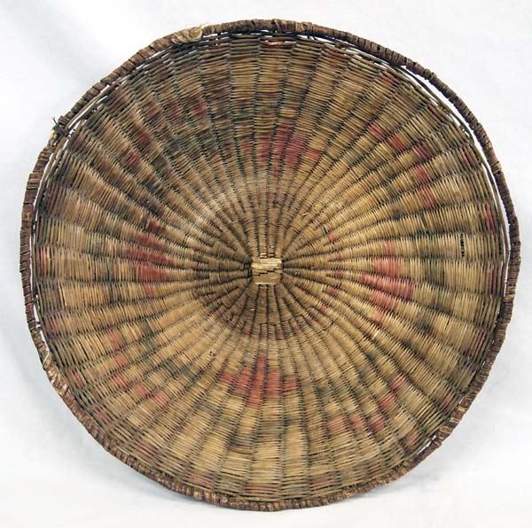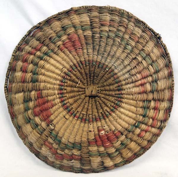 Antique Native American Zuni Tricolor Basketry Tray, measures 13''D x 2''H, normal wear and tear for age