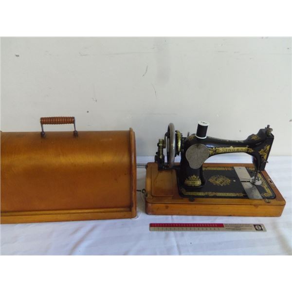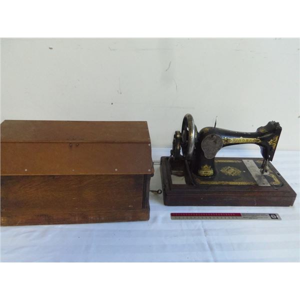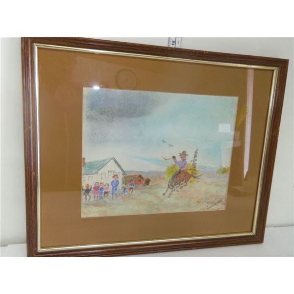 Line up for Antique-and Collectible Auction is: Original Signed Painting By Florence Mortimer, Annora Brown, Nigel Lawrence, John Herreiler, Limited Edition Prints By Frederick Remmington, Maurice Harvey., Framed Signed Lithographs By David Mc.Call Johnston, Antique "The Chatman" Kitchen Hoosier, Large Antique Easy Electric Washer, Medalta Crocks, Pitcher, Lamp base, Butter Churns, Lidded Casserole Dish, Tobacco Tins, Murawsky Furniture, 2 Sets of Antique Dining Room Set with Chairs, Wilson Airlite Football Helmet, Neumann Tin Horse and Buggy, Besson 8-10 Trombone, CPR Lantern, Pair of Handmade Beaded First Nation Gloves, 1900's "Solar" Chrome Oil Automotive Lamp, Antique "In-Out" Doctors Sign, Red Indian Enamel Sign, Chicklets Enamel Sign, Oil Lamps, Stone Bottles, Dressers With Mirrors, Antique Art Vases, Ice Cream Parlor Chairs, Depression Glass Dishes, Chrystal Dishes, Limited Edition By Linda Le Kinff, etc. etc.