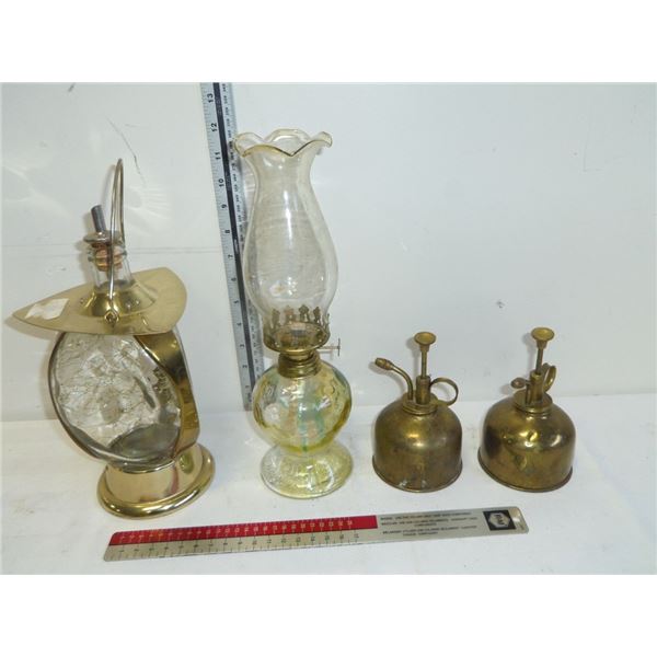 Vintage Oil Lamp, 2 Brass Watering Cans21 - Vintage Oil Lamp, 2 Brass Watering Cans