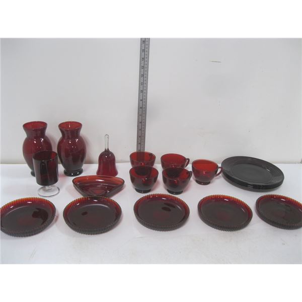 Misc. Vintage Red Glass Vases, Plates, Cups etc.