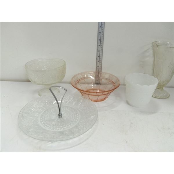 Depression Glass Bowl and Misc. Vintage Serving Ds