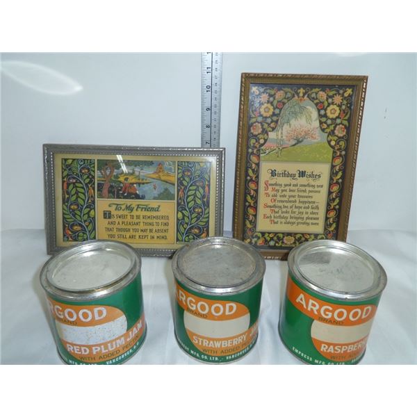 2 Vintage Framed Poems and 3 Argood Cans9 - 2 Vintage Framed Poems and 3 Argood Cans