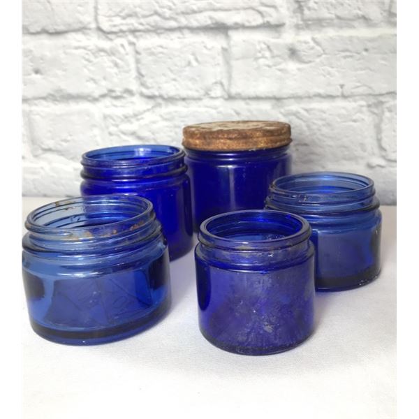 Cobalt Blue 5 Noxema jars. Various sizes.