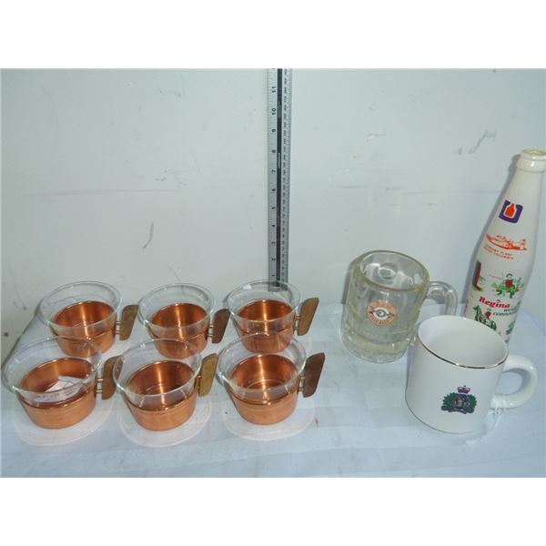 Vintage Glass/Copper Cups, RCMP Mug, A&W Mug33 - Vintage Glass/Copper Cups, RCMP Mug, A&W Mug