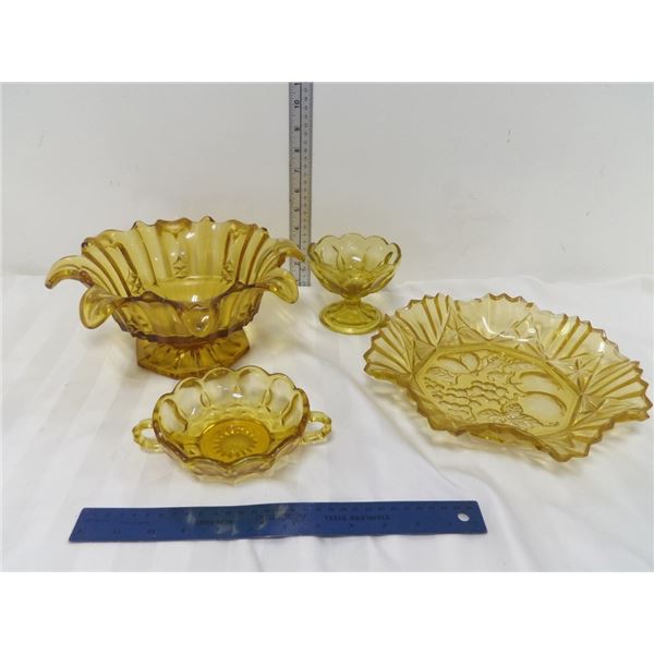 Amber Glass Bowls and Serving Platter