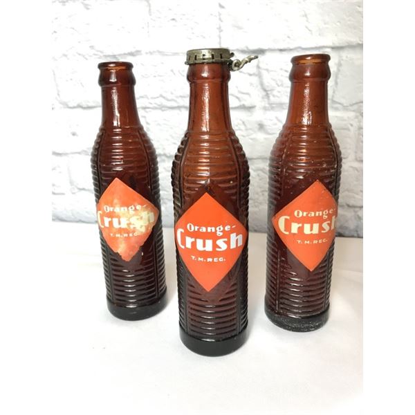 Three vintage Orange Crush amber ribbed bottles42 - Three vintage Orange Crush amber ribbed bottles