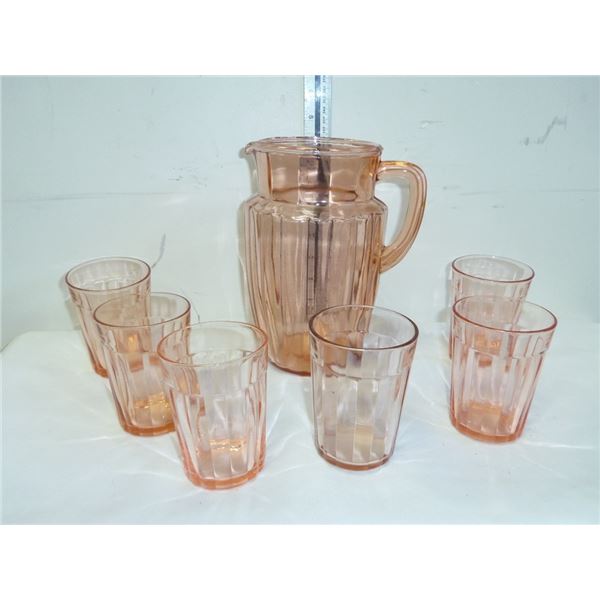 Depression Glass Pitcher with 5 Glasses200 - Depression Glass Pitcher with 5 Glasses