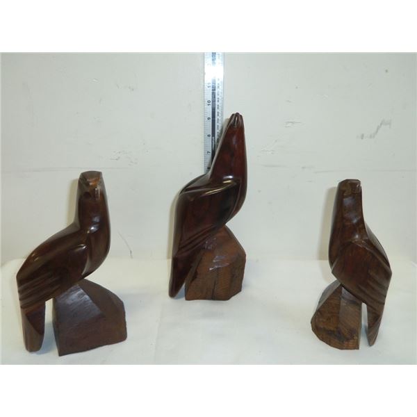 3 Iron Wood Bird Carvings