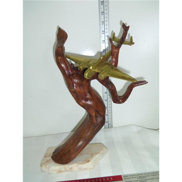 Folkart Brass Plane on Diamond  Willow Wood230 - Folkart Brass Plane on Diamond Willow Wood