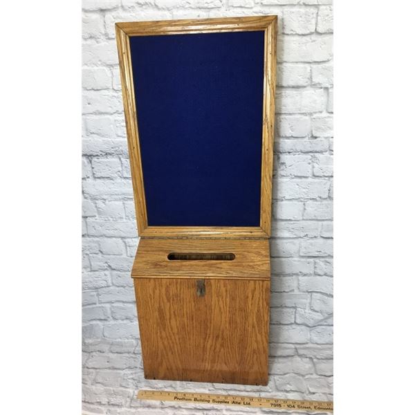 Oak suggestion/mail box with bulletin board.240 - Oak suggestion/mail box with bulletin board.