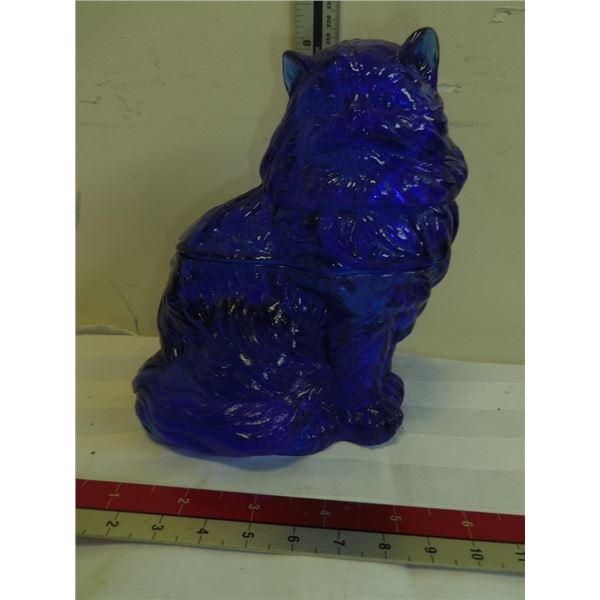 Vintage Blue Glass Cat 2-Piece Jar