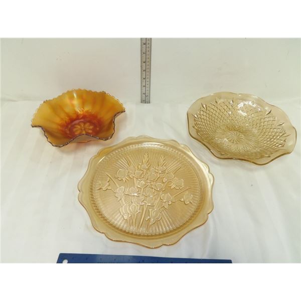 Serving Platter and Amber Glass Bowl