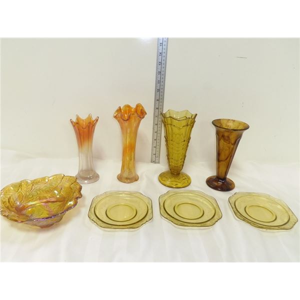 Vintage Vases and Amber Glass Bowls