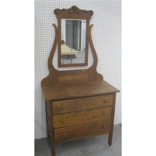 Three drawer dresser with Harp mounted mirror.391 - Three drawer dresser with Harp mounted mirror.
