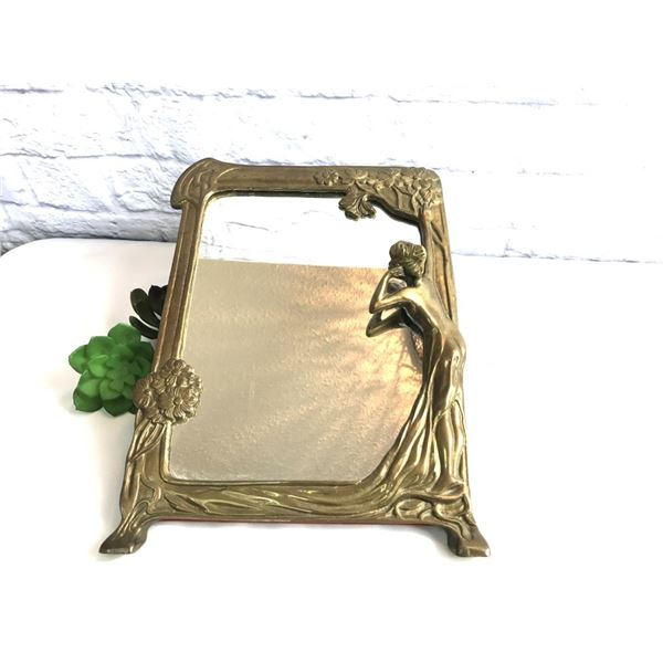 Brass miniature art nouveau mirror and picture387 - Brass miniature art nouveau mirror and picture