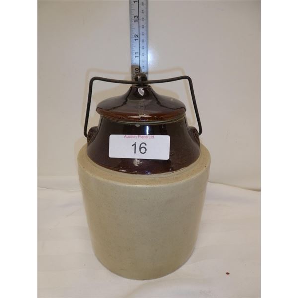 1-gal crock w/ lid and wood & wire handle14 - 1-gal crock w/ lid and wood & wire handle