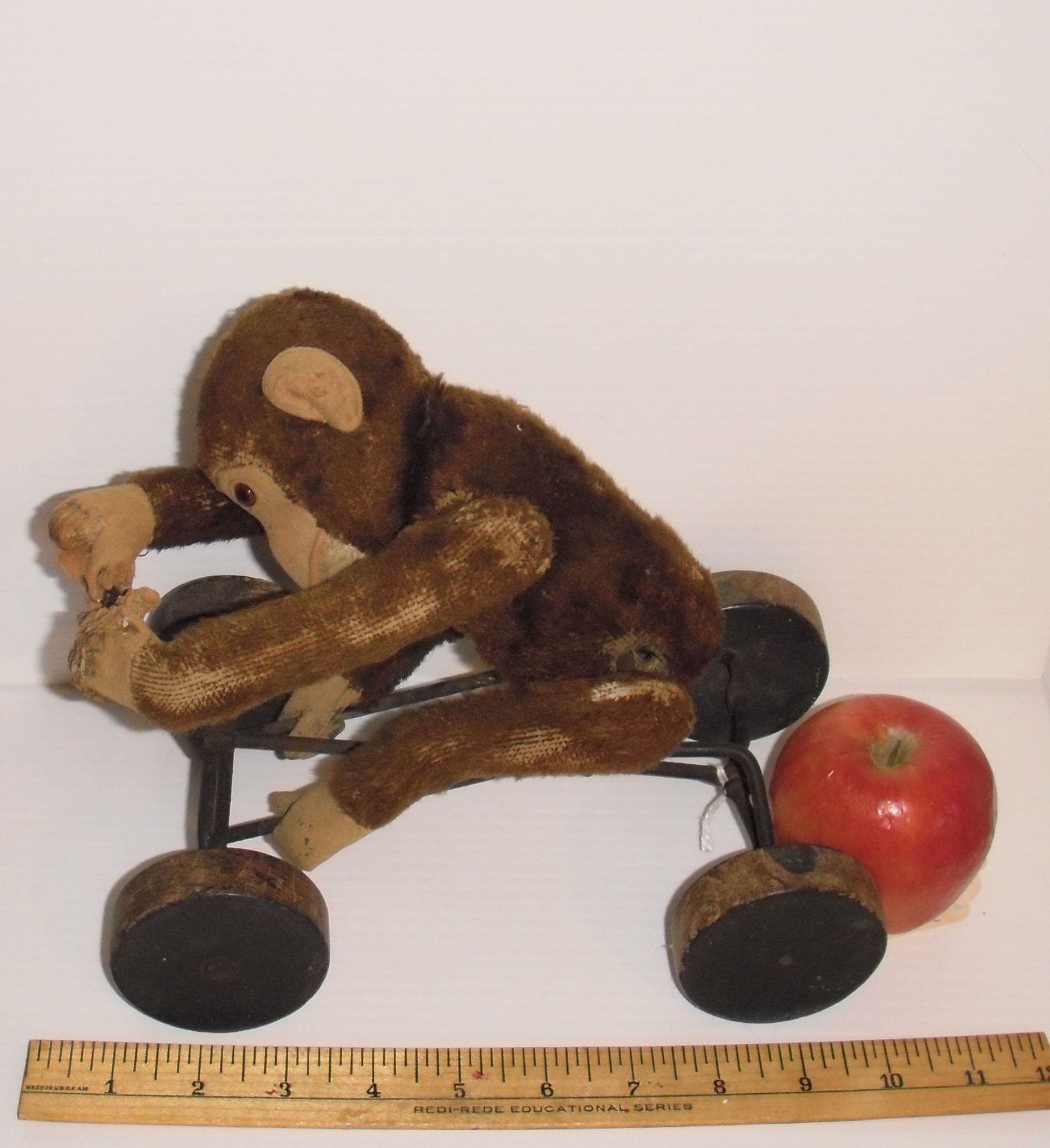 Antique as is toy monkey on four wood wheels likely Steiff 1912+ rare and for your collection