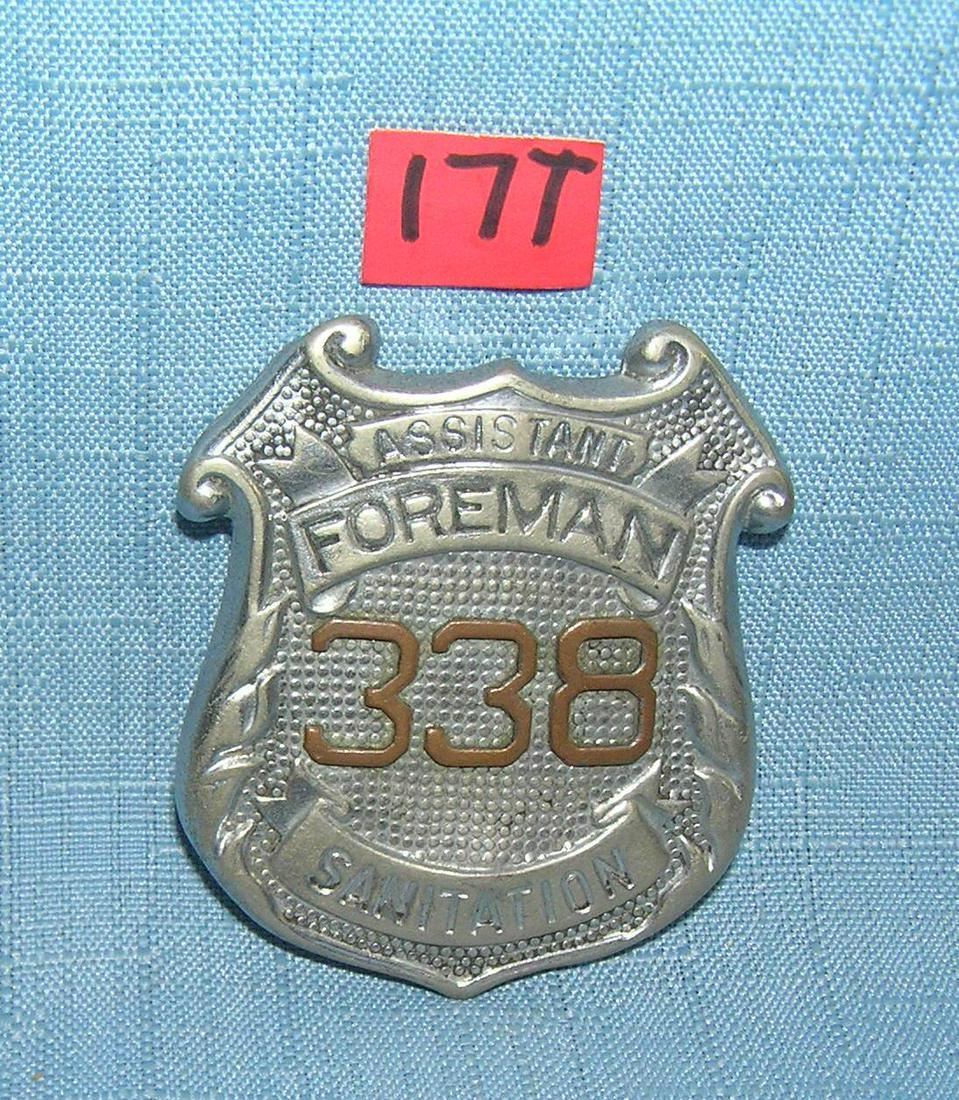 Antique assistant Forman of sanitation badge circa 1930's lacking pin in back est. value $125.00-$150.00