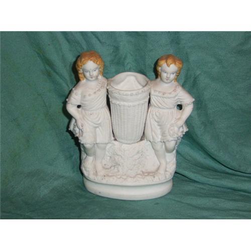 Small vase for flowers or hat pins or matches hold by 2 children.