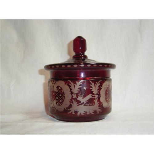 <tr><td>Title:Antique bohemian ruby-colored cut to clear pot</td></tr>