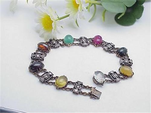 Antique bracelet with multi-colored cabochon stones and diamonds 7.25"
