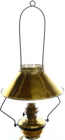 the burner marked Aladdin, original brass shade, electrified, 30" tall, very good condition. Est. 250-500
