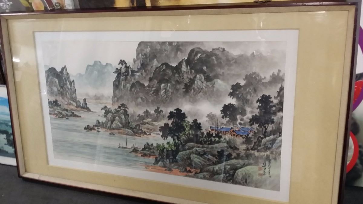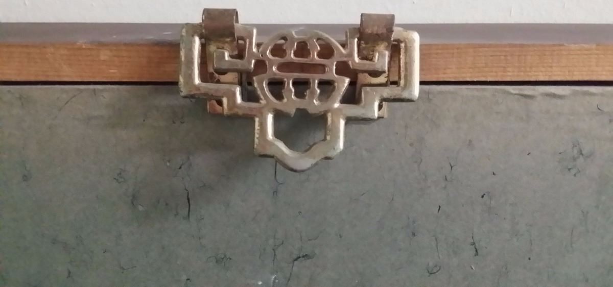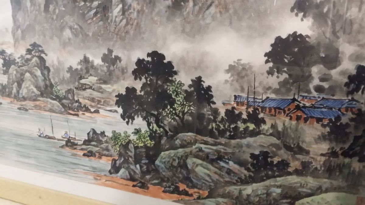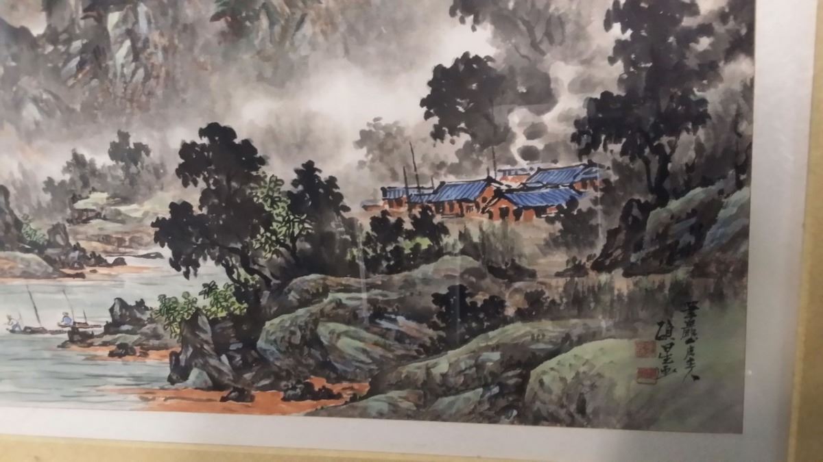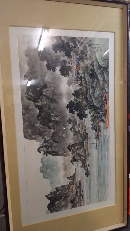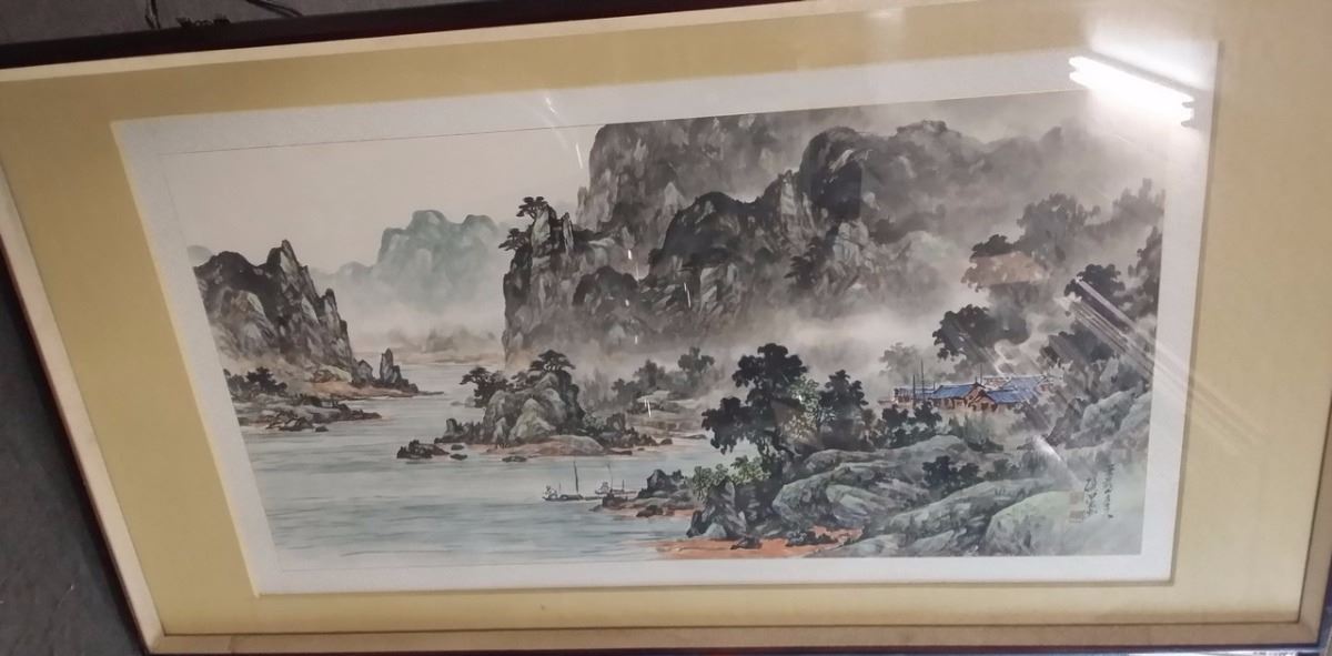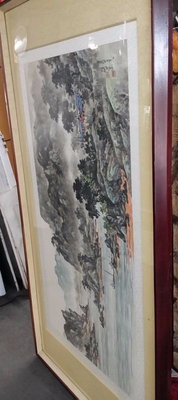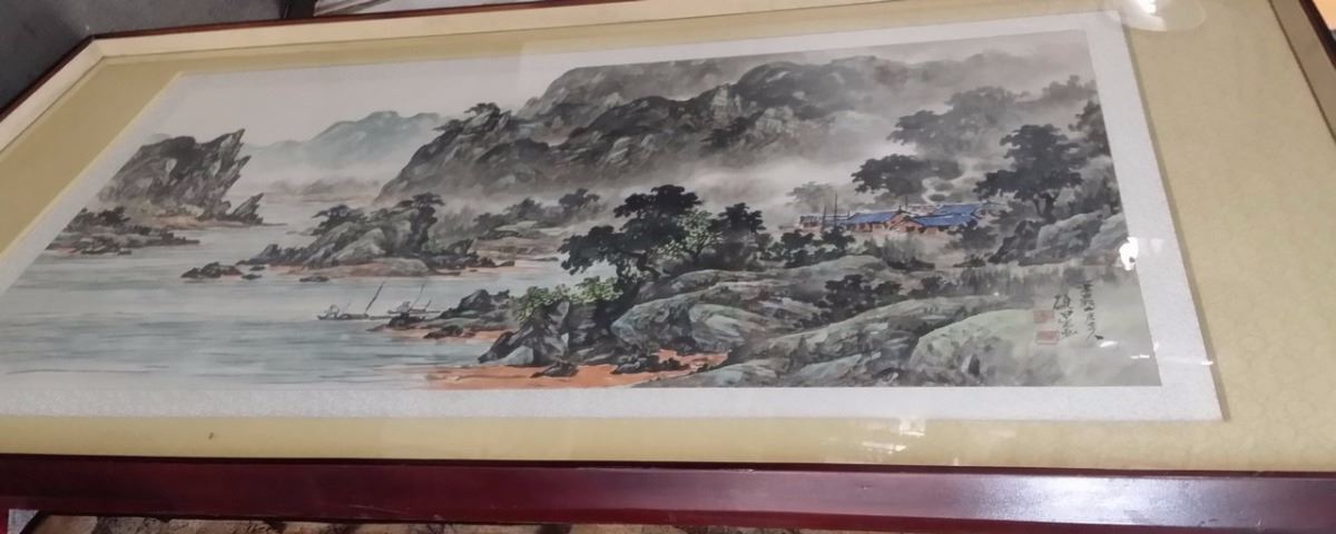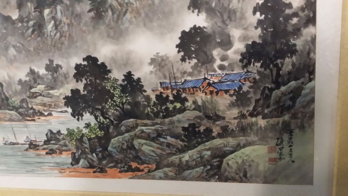 Antique c1800 Korean Ink & Color w. attached original artist documentation on back in Chinese Character which is normal for the period done on Silk Paper Scroll Signed w. Seal Mark Matted and Framed xLG size 80x40"
