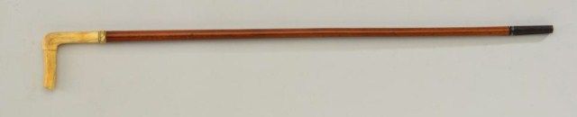Antique carved cane of collector's quality circa late 19th early 20th century with L shaped grip and buckle at area where shaft meets grip. The cane measures 31" in length, the shaft approx 27", the grip portionmeasures approx 3-1/4" across the L shape. Est.;$300-$600.