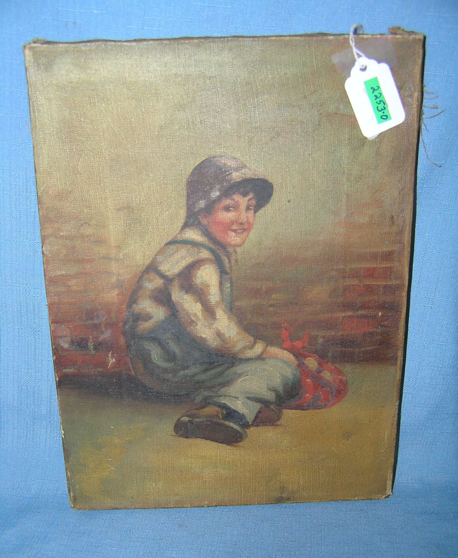 Antique child painting on canvas circa late 1800s est. value $300.00-$350.00