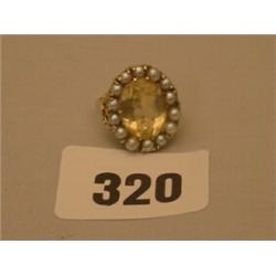 Antique citrine and pearl cluster ring set in 9ct gold
