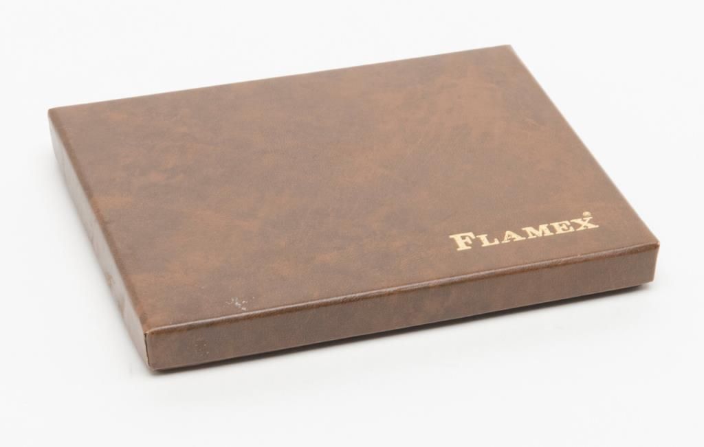 Antique combination cigarette lighter and case by Flamex of New York in its original box given to our consignor 62 years ago and never used. Manufactured in Baldwin, New York. Est.: $50-$100
